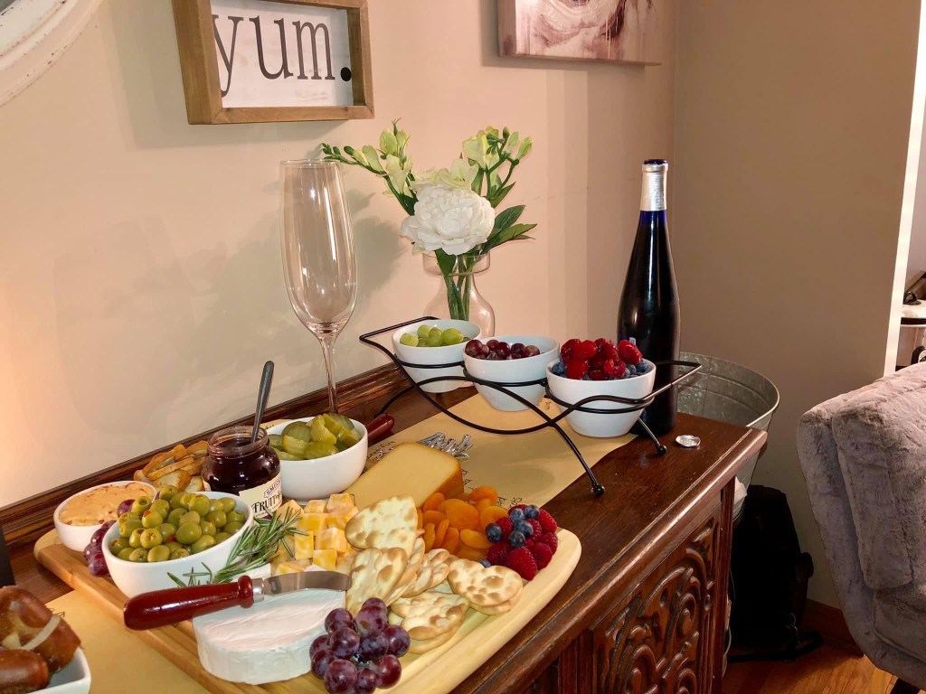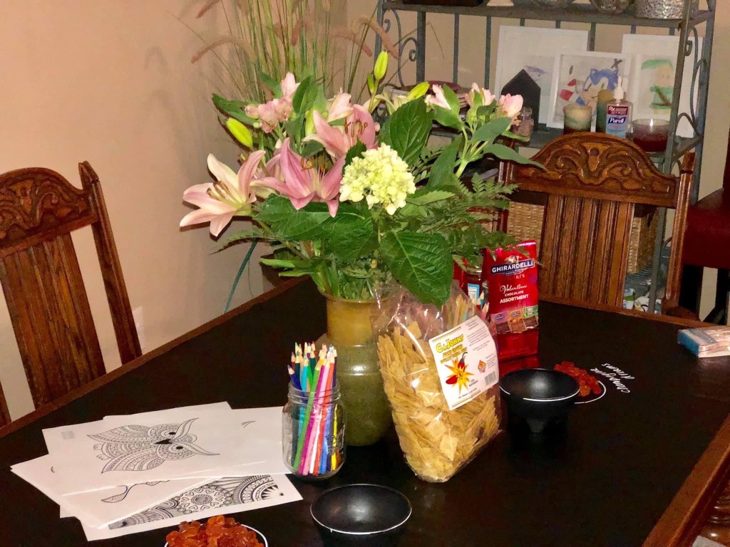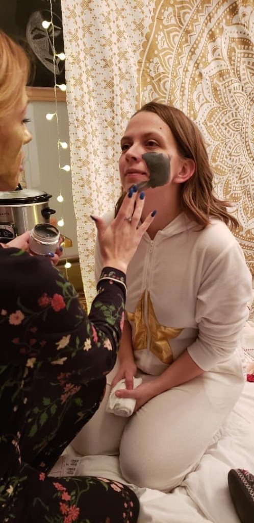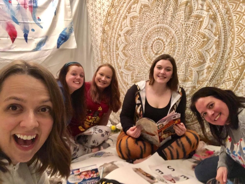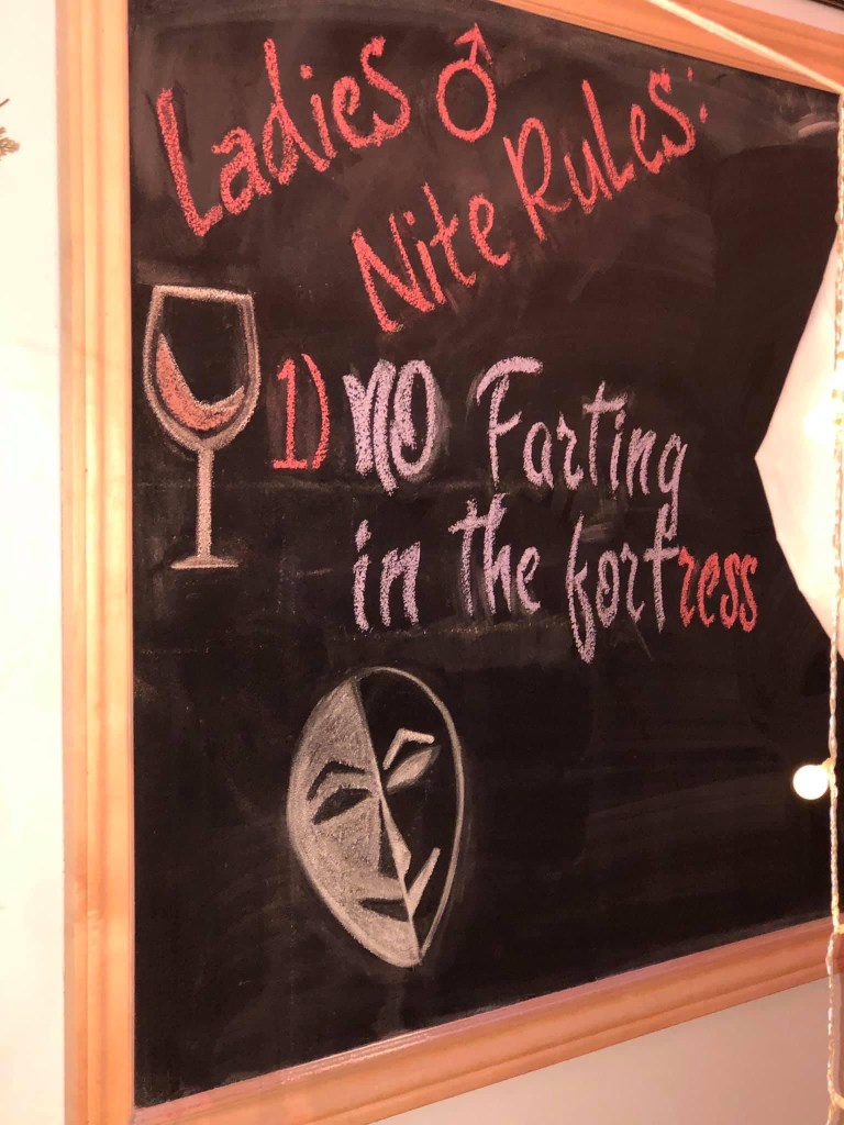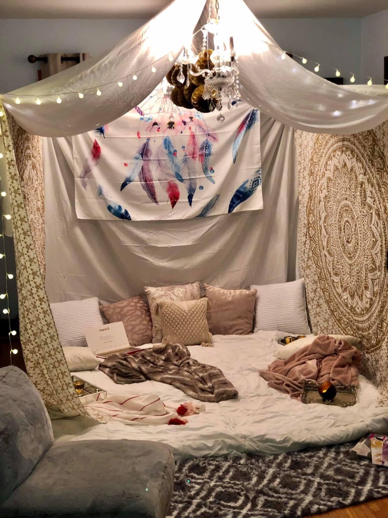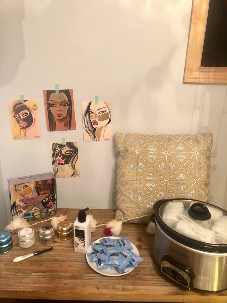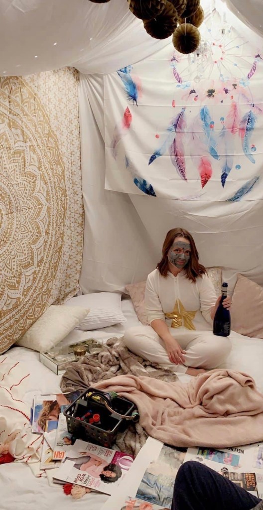 One of my favorite get togethers of all time was a ladies night that we hosted in our home. With the help of Tom we transformed our dining room into an epic fort. Pajamas were a requirement! We colored, created lip scrubs, and vision boards. Wine, Charcuterie, and chocolates. Face masks by glam glow! 10 out of 10 must do again… and AGAIN!